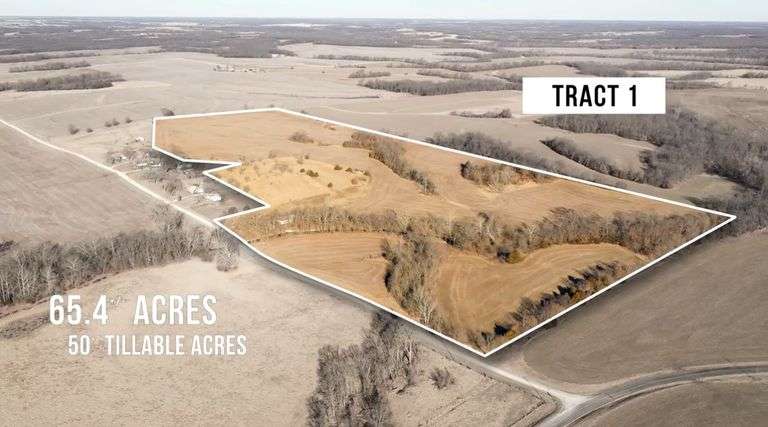Tract 1: 67.54 surveyed acres, featuring 44.34 acres of highly productive tillable land. This tract includes an open-front equipment shed. This beautiful tract also contains a live spring that is very active. 3 acres have been fenced around this ever giving water source.